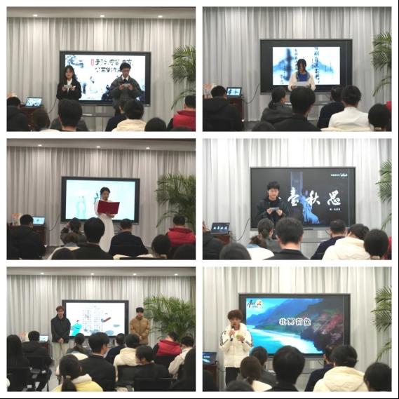 十三组参赛选手通过深情朗诵国学经典作品,充分展现了他们深厚的文化底蕴和优秀语言表达能力。朱董斌、孙悦悦带来的《子路,曾皙,冉有,公西华侍坐》展现了一个和谐、平等的教育环境,也体现了儒家“修齐治平”的理念和孔子的人生追求;张译带来的《论语十二章》阐述孔子的礼乐之道,让大家更加注重内心的修养和对他人的关爱,以实现个人和社会的和谐共处;尹婷的《氓》带领观众感受爱情的起伏和人生的变迁,提醒大家珍惜眼前的幸福和美好……大赛不仅为参赛者提供了一个展示自我、挑战自我的平台,更为观众带来了一次深入感受国学魅力的精彩体验。