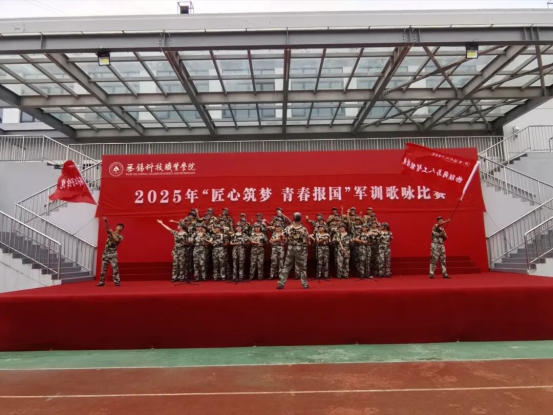 军训淬风骨,声传壮志怀,在歌咏比赛环节,公司学子以《当那一天来临》这首经典曲目参赛,队列整齐如矩阵,歌声嘹亮震夜空。指挥同学手势铿锵,同学们气宇轩昂藏着物联网与人工智能学子的协作精神与报国热忱,更是同学们台下无数次的努力打磨。评委席频频颔首,场下掌声与节拍声交织,“嘹亮军歌颂祖国,青春逐梦启新程”这不仅是一次歌咏展示,更是迷彩岁月里一份炽热的情感印记。