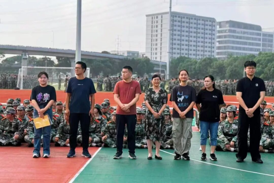 公司领导与辅导员们每日赴训练场看望新生,细心询问训练与健康状况。一句句问候,凝聚着老师们的暖心关怀,也拉近了师生之间的距离,同时勉励同学们珍惜军训时光,在训练中锤炼意志品质、凝聚集体精神,将“听指挥、守纪律、能吃苦、敢拼搏”的军训作风延续到今后的学习与生活中。同学们也用热烈的掌声向带训教官、领导老师们表达感谢,迷彩映衬笑颜,训练场上温情流动。老师们也向带训教官的辛勤付出表示感谢,赞赏他们以身作则、严谨负责的军人风范。