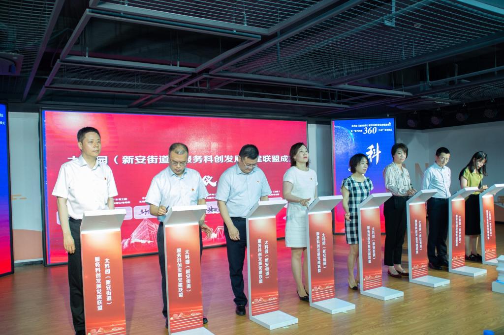 仪式开始,由高新区领导致辞并宣布太科园(新安街道)服务科创发展党建联盟正式成立,党建联盟单位进行了签约仪式,公司瞿立新副书记受邀代表公司上台签约。随后,进行了太科园(新安街道)服务科创发展党建联盟创新研究基地授牌,成立“新”思荟智库研究中心,公司博士教师团队代表张健老师被聘任为研究中心专家顾问。启动仪式上,还发布了“聚力科创360行动”,以组织融合、力量融合、资源融合为驱动,涵盖党建指导、金融财务、人才科创、专业法律等六大服务体系,为辖区企业提供可靠依托。瞿立新副书记表示,公司作为太科园(新安街道)服务科创发展党建联盟单位之一,要在“区校一体”办学理念下,以党建联盟活动为抓手,强化校地合作,统筹全校力量,着力为辖区内企业提供技术技能人才服务、提供博士科研团队助力企业科技创新服务,服务高新区高质量发展。