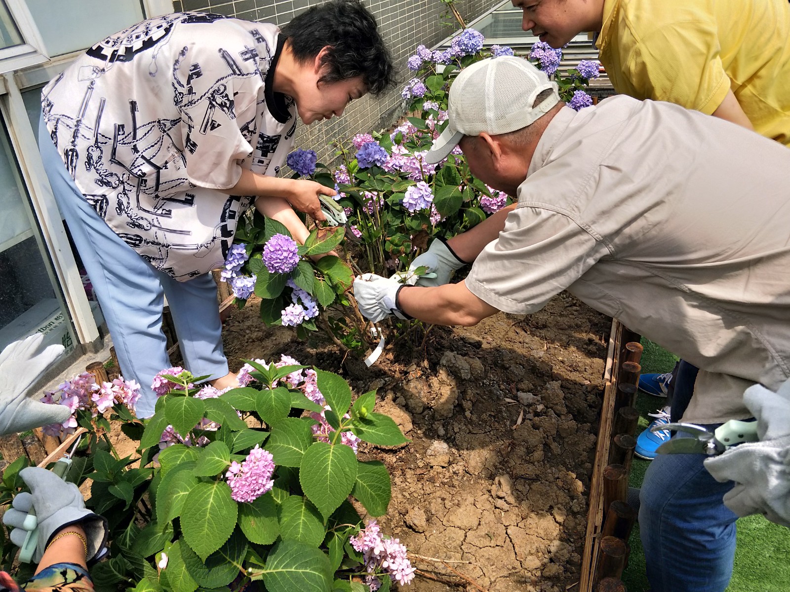 一行代表沿着公司的林荫小道参观公司的各项文化建设与基础设施建设。周经理从不同方面将公司的各种办学经验向每一位来宾娓娓道来。公司的办学成果及建设经验让前来交流学习的代表赞不绝口。大家通过关注公司微信公众号,从线上线下全方位了解了公司现有的社区课程安排。在园艺师华老师的指导下,大家现场实践学习了绣球花的培育和裁剪,每一株都是心意的释放,每一株都是“舍与得”的寄托。赵书记同公司党建联盟单位太二社区华裕栋书记开启今天的书香之旅——赠书交流仪式。“书香传递 润泽心灵”,人生最富有旨在闲暇之时,品味书香,放松身心。
