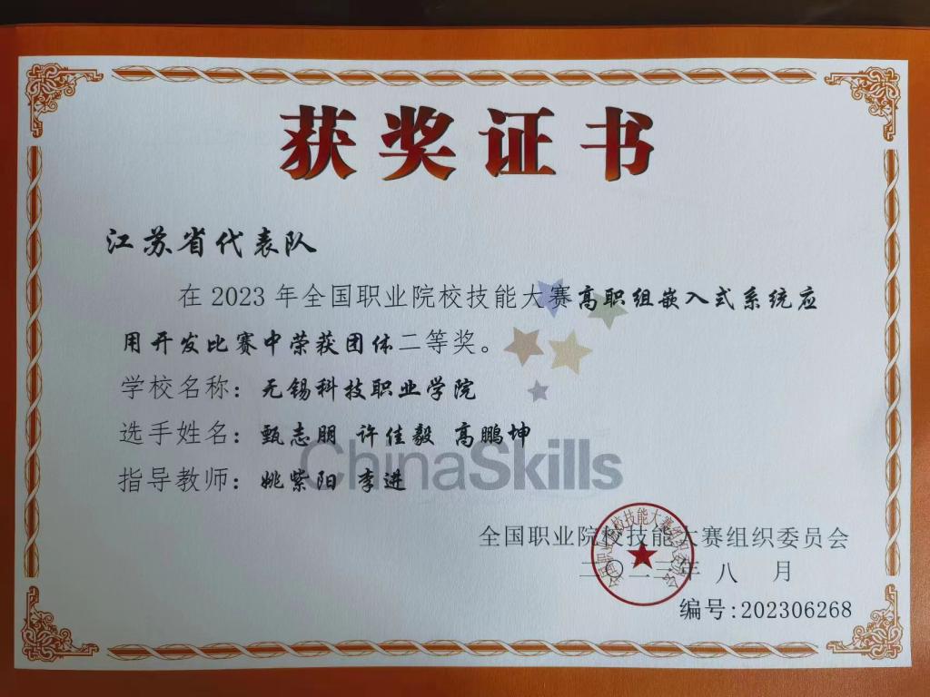 8月3-6日,由教育部、科技部、工信部等国务院23个部委主办,湖北省教育厅、黄石市人民政府承办,湖北工程公司和百科荣创(北京)科技发展有限公司协办的全国职业院校技能大赛高职组嵌入式系统应用开发赛项,在湖北工程职业公司举行,吸引了来自全国30个省、自治区、直辖市的69支队伍、200多名选手。公司由伟德bevictor副经理刘军伟带队,姚紫阳经理和李进老师指导的甄志鹏、高鹏坤、许佳毅员工团队参加本次大赛,经过紧张而激烈的角逐,获得二等奖的好成绩。