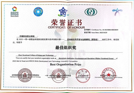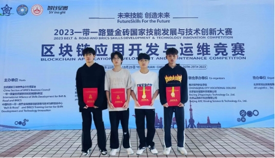 10月27日,2023“一带一路”暨金砖国家技能发展与技术创新大赛“区块链应用开发与运维竞赛”在重庆城市职业公司举行,大赛为期3天,共有来自国内外的115支队伍参赛。公司伟德bevictor教师卞成华、张健指导的软件技术专业员工谈才华、曾跃团队荣获一等奖,人工智能技术应用专业员工叶文敬、卢奔奔团队获优秀奖,公司获最佳组织奖。