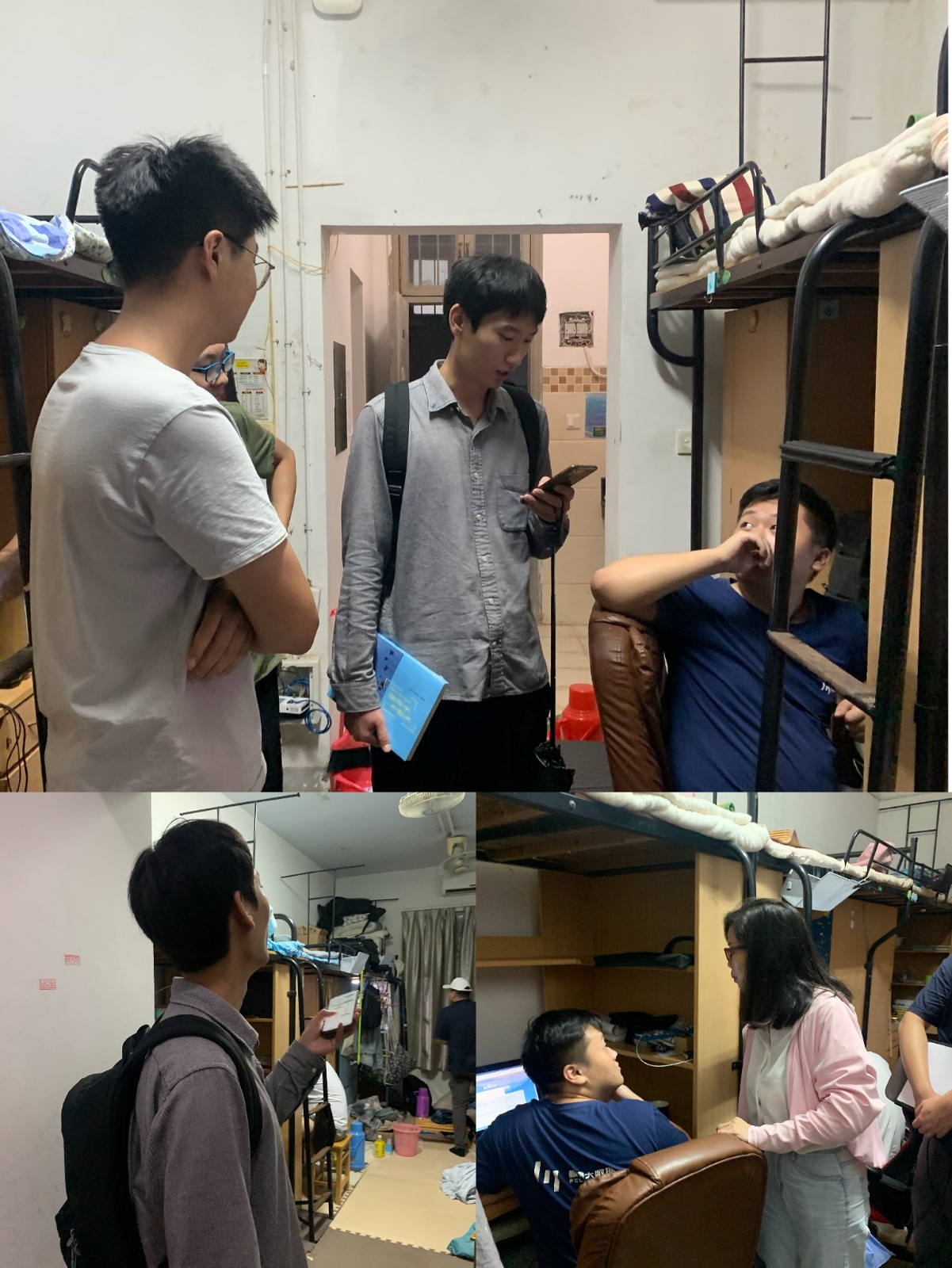 晚上,全体辅导员走访了员工宿舍,与员工们亲切地交谈,询问他们8个多月来的生活情况、思想情况,了解他们对新学期的规划和想法;提醒他们做好宿舍的卫生和安全、按时就寝,以饱满的状态迎新第二天的课程。