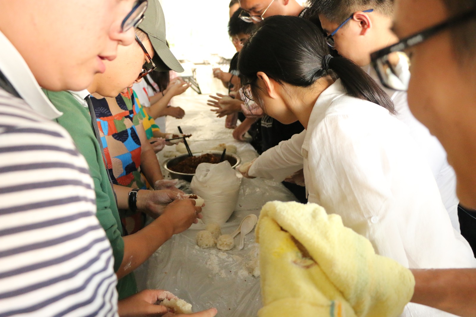 长空晓月,花好月圆,伴着傍晚黄昏暖暖,“中秋,我们在一起”活动在食堂二楼开展。自古以来无锡有“八月半,糖馅麦饼镬里熯”的中秋习俗,为了让同学们品尝正宗的无锡当地节日美食,物软公司分团委特邀了本地老人来现场教授新生们如何做糯米饼。对无锡充满了未知感的新生们初次做当地美食充满了好奇,在老人的指导下,同学们进行了男女分工合作,男生将糯米揉黏,聚成团块,而女生则将馅料填入其中,团结化为了力量绳,每个人用行动填满了内心对家人的思念。最后在二食堂工作人员的帮助下同学们成功做出了糯米饼,伴随着浓浓的糯米香味,同学们各自选出了自己的佳作品尝起来,这香薷的糯米饼同时也黏合起了大一新生们与科院的距离。