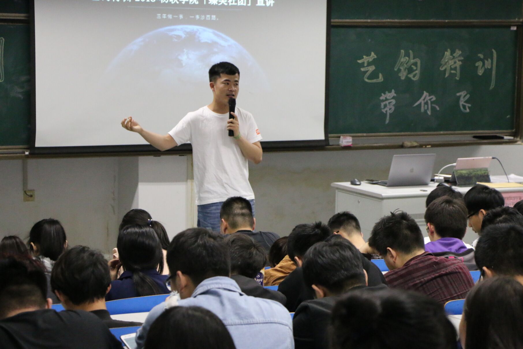 问渠那得清如许,为有源头活水来。黑色的夜幕中,细雨绵绵,清风吹拂,眺望远处仿佛有一束光指向远方,从而很多人选择了向光的方向继续前行,这束光便是臻美给你带来的技能学习。为了让物联网公司广老员工拥有一技之长,臻美社团负责人黄海涛与周莉娜联合赵老师请来艺钧创始人张严学长,举行臻美演示特训营开营宣讲活动。2018年5月21日,在f111进行了两批宣讲活动,第一批18点,第二批是19点10分开始,物联网与软件技术公司全体大一员工参加。