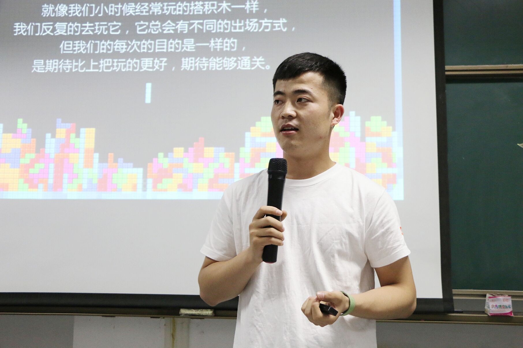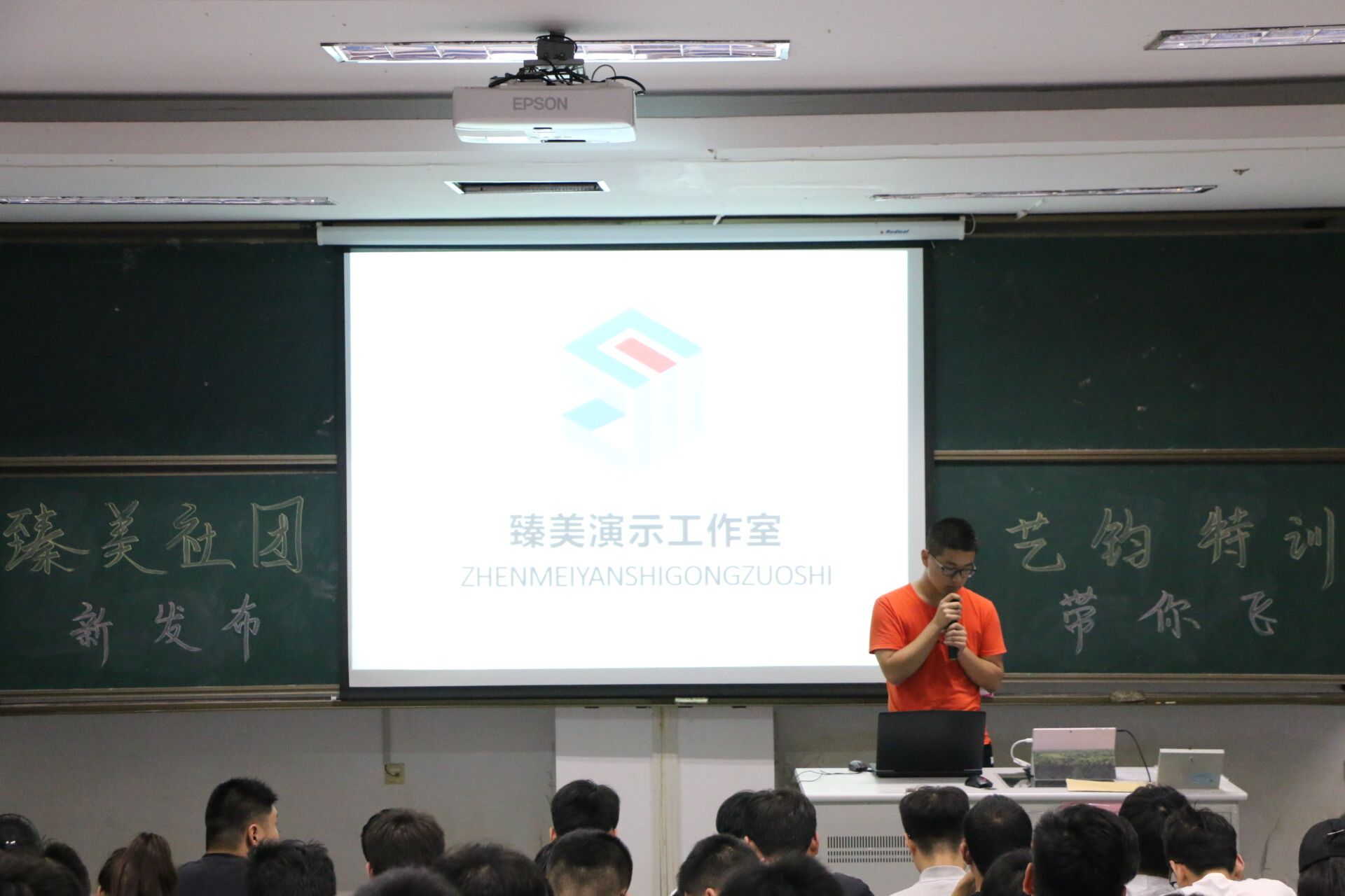 随着大家陆续进场,教室里的气氛越加活跃,激情澎湃的音乐,不断在耳旁响起,学长激励着大家要敢于尝试。张严学长与在场的同学进行开场前的互动,“你们有多少知道我的”,下面同学们都沸腾了,可见张严学长对同学们还是很熟悉的,于是便切入正题,开始介绍“臻美社团”,首先介绍了“臻美”的由来,艺钧是臻美的前辈,艺钧社团大家都有所耳闻,他们因为爱好给自己带来了惊喜,而臻美也不赖,坚持将一些爱好相同的同学聚集到一起学习讨论。