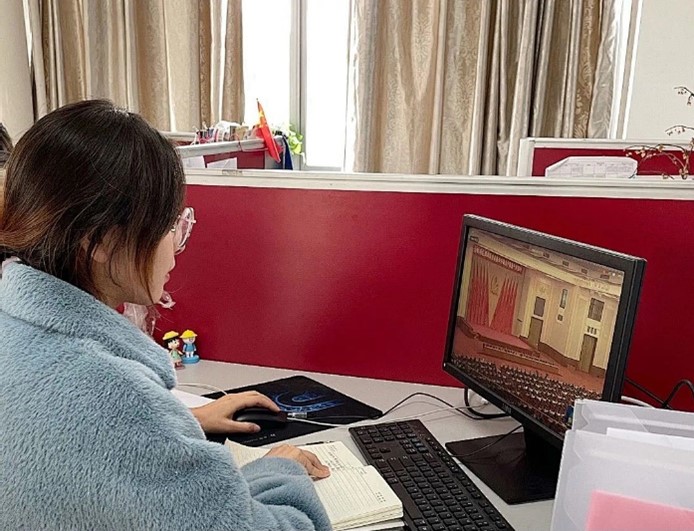 党的十九届六中全会是在“两个一百年”奋斗目标历史交汇关键节点上召开的一次重要会议,全会强调“两个确立”,对促进中华民族伟大复兴的历史进程具有重要意义。郑莹老师首先带领大家系统学习了《中国共产党的十九届六中全会公报》,重点学习党的十九届六中全会上通过的《中共中央关于党的百年奋斗重大成就和历史经验的决议》,并向同学们表达了自己作为新时代辅导员的初心使命,要坚持立德树人的根本任务,立足本职工作,发扬伟大的建党精神,引导员工自觉将“个人梦”融入“中国梦”,成为能够堪当民族复兴大任的时代新人。同学们纷纷表示,要积极响应中央号召,坚持以习近平新时代中国特色社会主义思想为指导,牢记初心使命,担起实现中华民族伟大复兴的重任。并以第一个百年奋斗目标的实现为动力,坚定信心,以一往无前的奋斗姿态在实现第二个百年奋斗目标的道路上继续前行。