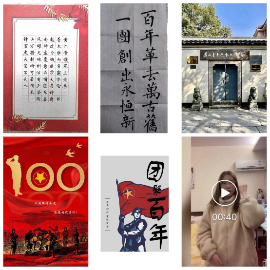 百年团史是中国特色社会主义文化的重要组成部分,是中华民族伟大精神的生动体现。正值建团百年之际,团队成员按纪实纪录、创新创意等要求,创作出系列相关优秀文艺作品,通过书法、摄影、视频、团歌手势舞、绘画、海报、线上采访、团员读团史等方式,丰富实践活动的内容,做到以美育人、以文化人。