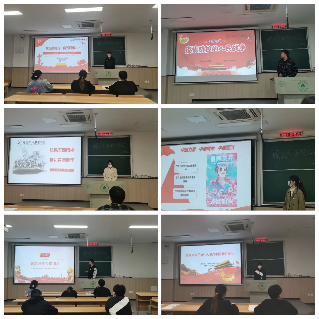 在疫情防控要求的基础上,于3月31日晚6点在D109开展了团史知识竞赛。郑莹老师向在座的团支书们提出以下几点要求和希望:要不断提升业务能力,推进团支部思想阵地建设;要从大处着眼、小处着手等建议,希望各位团支书能够真正做到把党团理论知识弄明白、讲清楚,把红色基因传递给每一位同学。