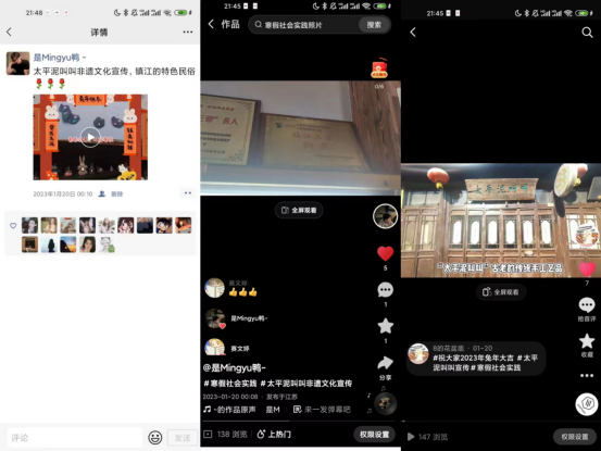 团队成员纷纷表示受益匪浅,通过此次社会实践活动,弘扬传统文化,坚定文化自信,成员们在推广中国传统文化的过程中增强了文化自信;进一步激发了对弘扬传统文化的热情和信心,纷纷表示要为家乡传统文化和非遗文化的传承贡献自己的青春力量。