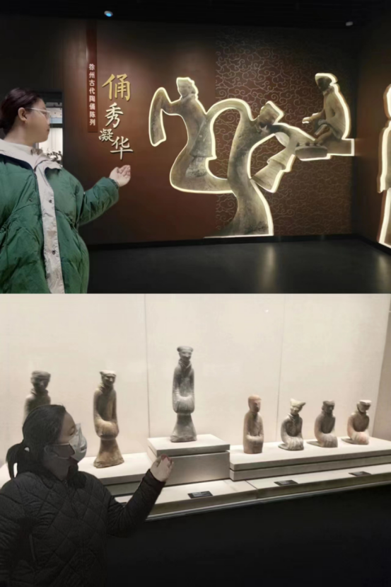 团队成员代表金雨先后去往江苏省柳琴剧院观看柳琴戏,让成员们更加深刻的了解了戏曲文化,提高成员们对中华传统文化的领悟。徐州博物馆观赏《汉室遗珍》的三个展厅:铜、金银器,玉器和陶石器。《俑偶华彩》的210余件汉至宋代的陶俑艺术精品:西汉乐舞俑、彩绘仪卫俑、北朝彩绘女立俑。徐州民俗博物馆里根据展品仿照剪出富有年味精美剪纸,让成员们深深感受了徐州特有的文化民俗。