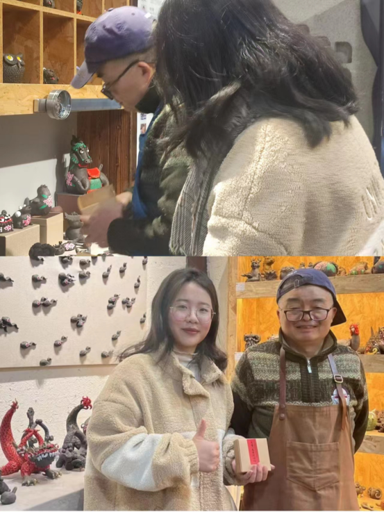 团队成员代表庄妍探访了镇江西津渡历史文化古街去寻访西津民俗文化,以网络直播、拍照的形式进行打卡历史景点、体验特色民俗,并且以手绘西津路线,使成员们一同感受西津文化的近距离感和亲切感,增强了文化亲缘。专门拜访了太平泥叫叫的传承人周宝康老师,了解民间象征着对太平美好生活向往的“太平泥叫叫”,宣讲了镇江民间泥塑文化,帮助周老师宣传家乡“泥叫叫”的生动故事。
