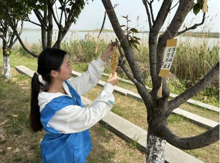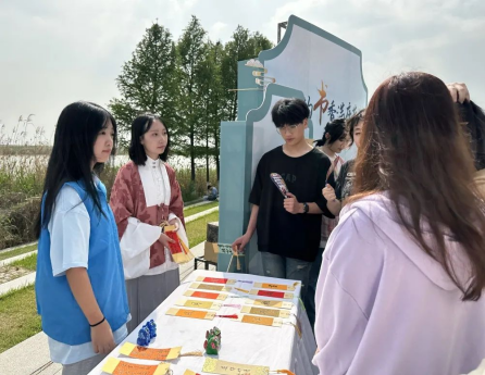 春风送暖入屠苏,半墨书签寄寓意。志愿者们参与到阅读打卡点服务中,在“诗词飞花令”游戏点和“书果计划”游戏点向读者讲解规则,赠送书签,并积极宣传诗词知识,积极调动着现场的气氛。他们用心坚守、默默付出,用严谨认真的态度和细心周到的服务助力活动的顺利进行,为此次湖畔阅读交流会增光添彩。