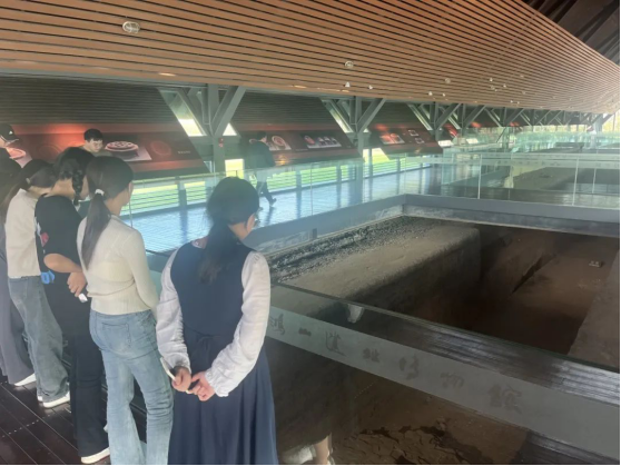 我们挥手告别这场穿越旅程,文物所带来的震撼久久挥之不去,站在大厅与他们合影,为这场跨越千年的旅程画上句号。