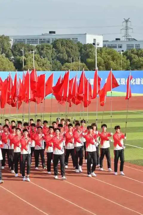 在操场上,红旗队队员们展现出修直挺拔的身影,气宇轩昂的身姿,整齐划一的队伍,展示了物智学子昂扬向上的精神风貌。红旗队员的目光深情而又自信,步伐矫健又整齐,青春在跃动中勃发,团结在拼搏中彰显!