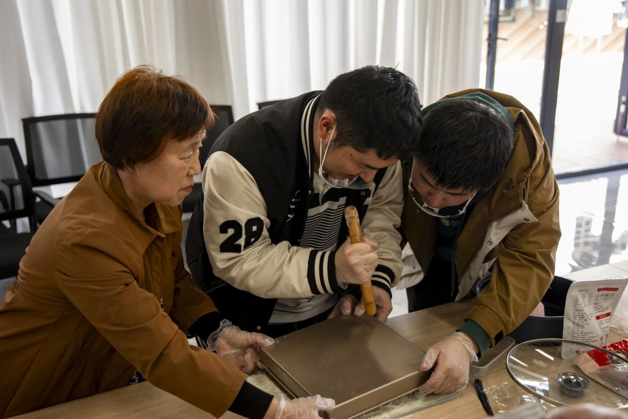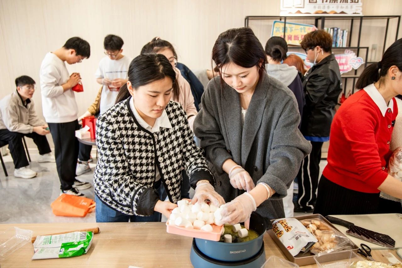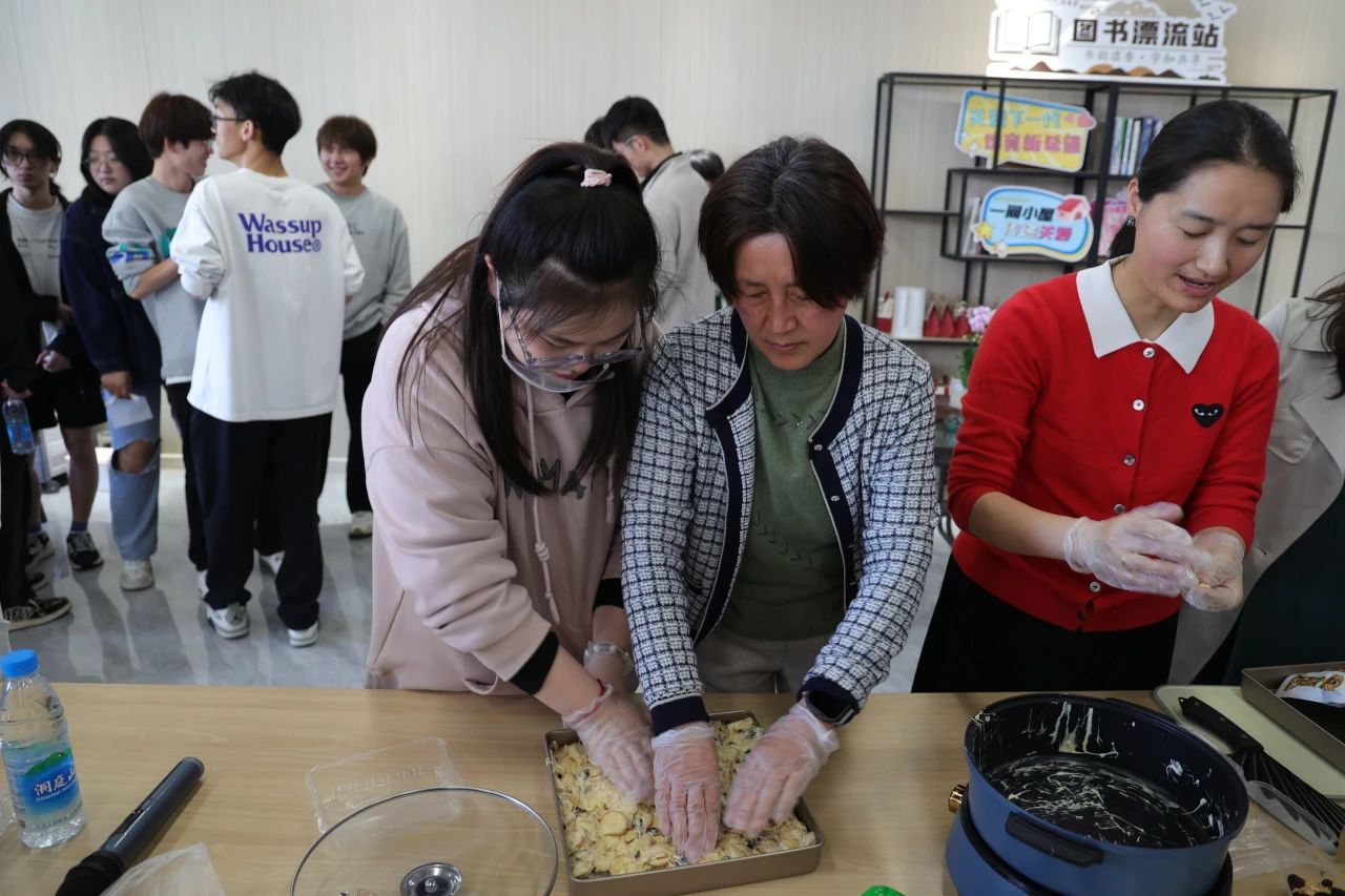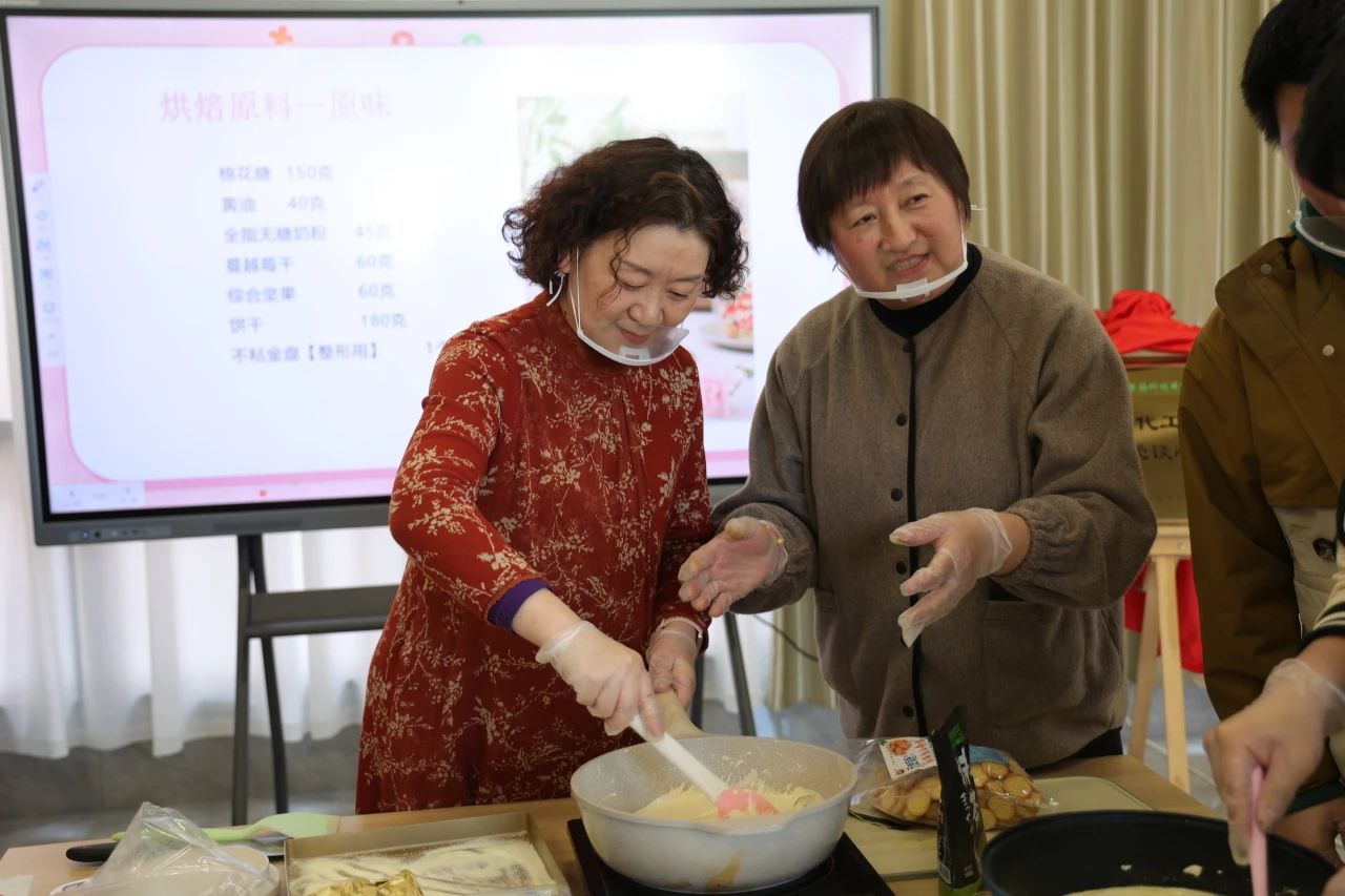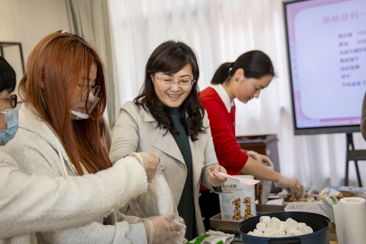 此次活动由“五老”蒋海娇老师带着同学们制作雪花酥,在“关爱谈心屋”温馨的环境中,工作人员提前准备好了黄油、棉花糖、奶粉、坚果和果干等食材。在蒋老师的指导下,同学们兴致勃勃地参与到制作过程中。他们认真地跟随老师的步骤,将黄油和棉花糖融化混合,再加入饼干和坚果进行搅拌。很多同学大胆尝试,融入自己的想象力和创造力,制作出不同口味的雪花酥。在大家的共同努力下,一块块香甜的雪花酥逐渐成型,活动现场其乐融融,“关爱谈心屋”被欢声笑语甜蜜拥抱。