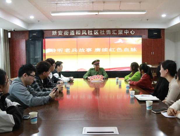 在和风社区,同学们聆听老兵周留兴讲解部队的故事,1968年3月入伍,在部队获“五好战士”荣誉称号。如今,头发花白的周留兴退休不退志,积极承担社区治理各项任务,善于发现周边群众的困难,总会给身边的人带来暖暖的正能量。交流现场,周老用真挚简朴的语言向同学们讲述部队生活经历。在场的同学们都认真聆听,用心领会,更是积极地向老兵咨询了关于部队日常生活的各种各样的问题,老兵耐心解答,让同学们对部队文化和生活有了更全面的认识,同时老兵用亲身经历勉励同学们要勤奋学习、报效祖国,珍惜这来之不易的美好生活。