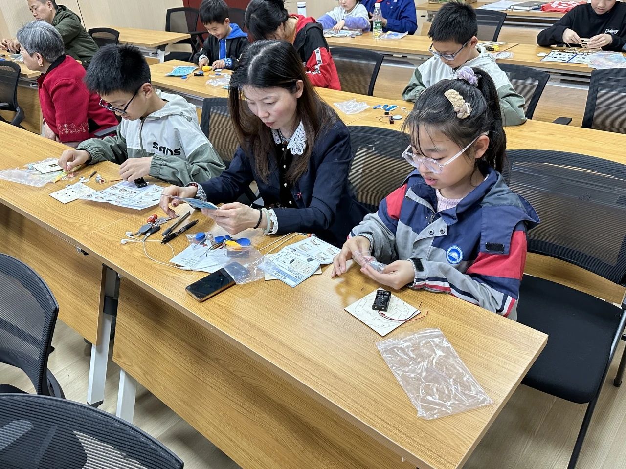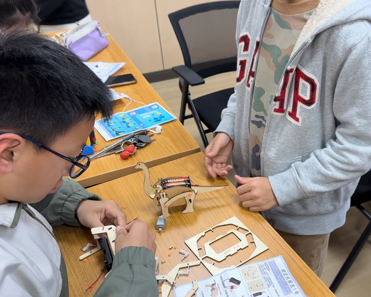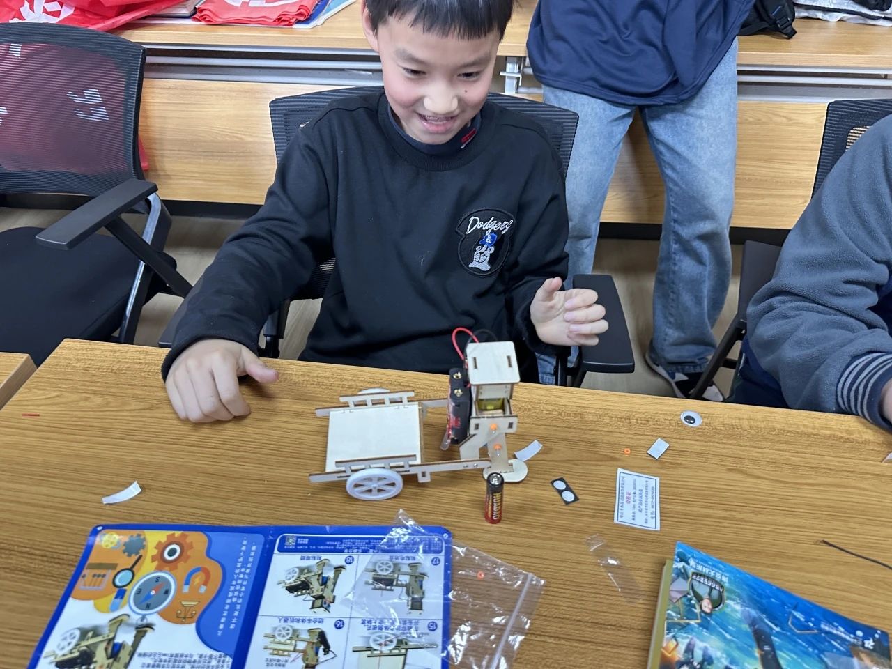 在老师和学长的精心讲解后,小朋友们化身精益求精的“小工匠”,纷纷行动起来,认真分析任务,专注地投入到科技小制作中。