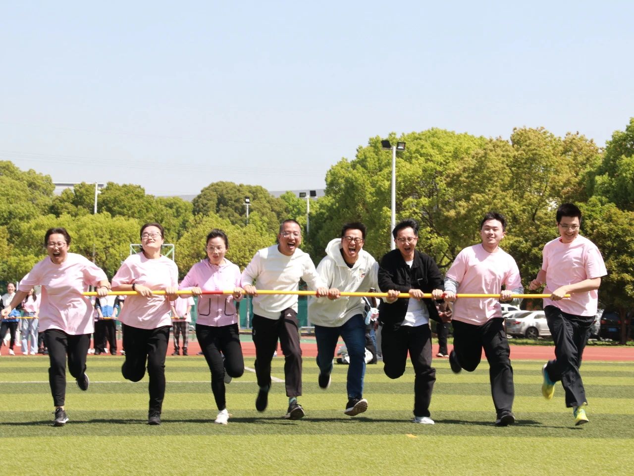 “一群人一条心,一根杆一起拼”。每一次转弯、每一次加速,都是对团队协作与个人能力的双重考验。在欢声笑语与紧张刺激中,老师们追求着那份属于旋风跑的极致快乐。