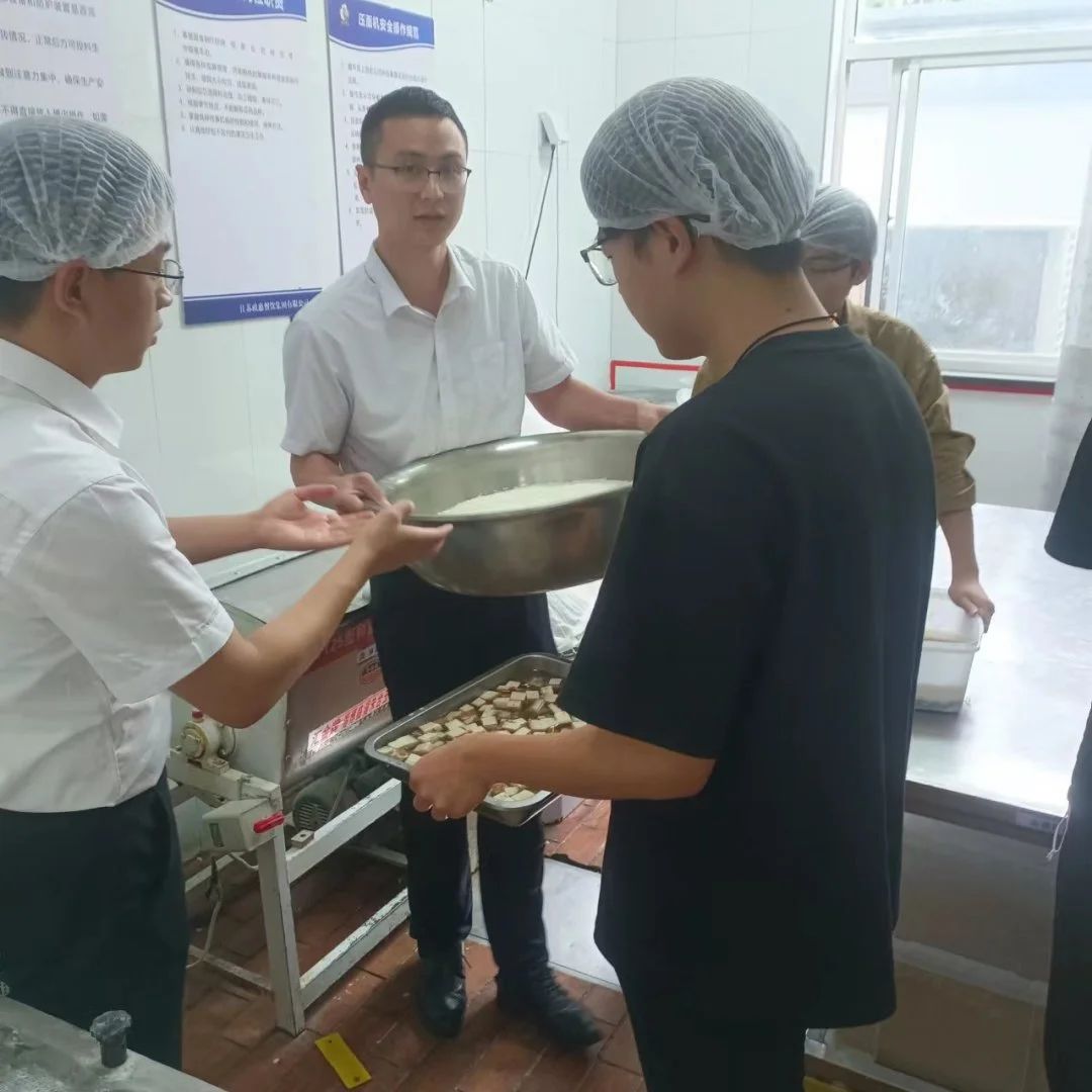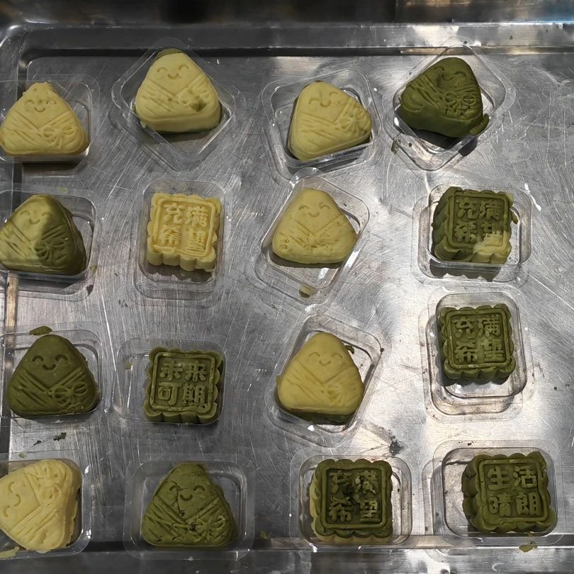 制作现场,同学们还体验了绿豆糕的制作方法和技巧,老师就如何揉面团、调馅、放入模具,按压敲打成型等需要注意的事项做了细致讲解。在指导老师的帮助下,同学们有条不紊地进行着绿豆糕的制作,一个个形态各异、精美诱人的绿豆糕从同学们手中“诞生”了。