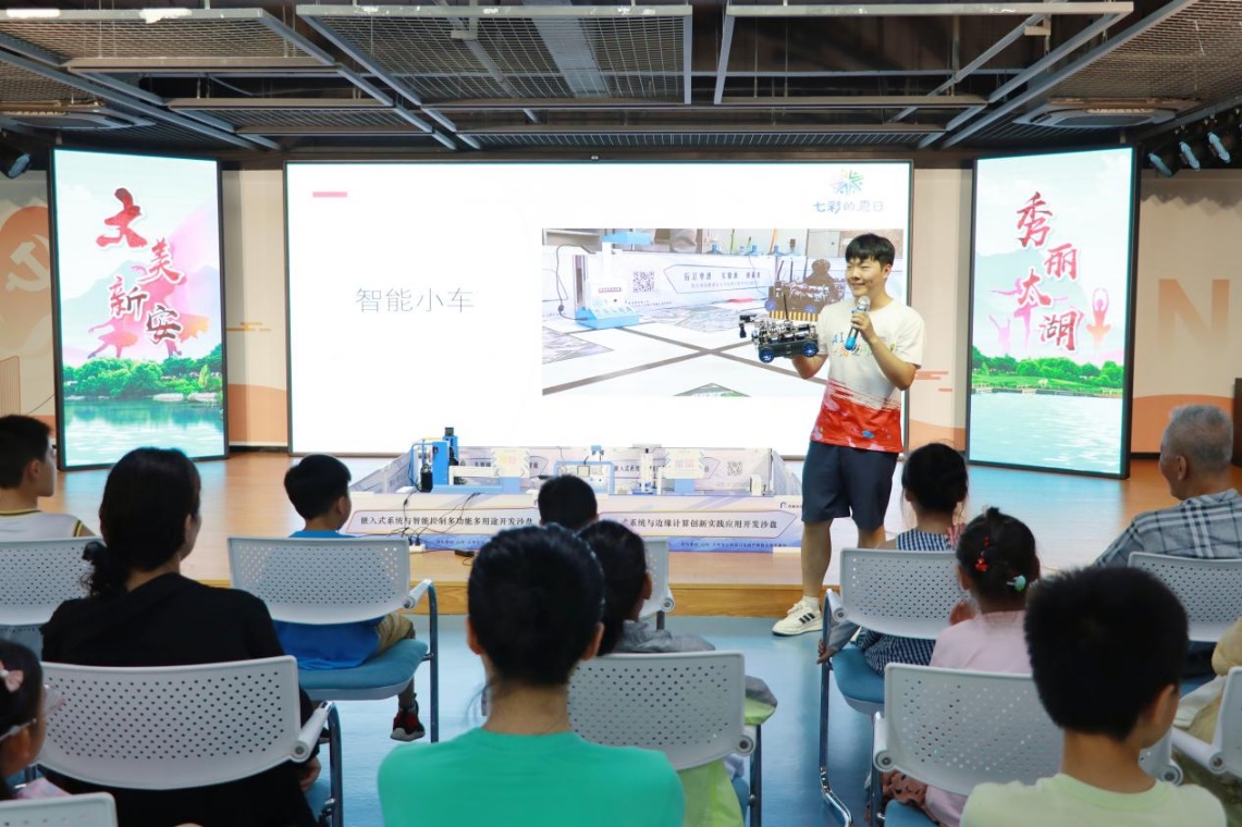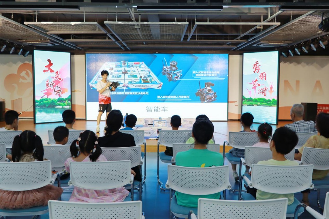 暑期伊始,艳阳高照,7月3日、7月4日,团队成员就在指导老师的带领下,带上公司的AI设备—智能小车,也带上满腔的热情和朝气走进新安街道辖区中国电子系统工程第二建设有限公司(中电二公司)、新安街道党群服务中心、净湖社区、新安花苑二社区以及三社区党群服务中心。每场活动都深深吸引着充满求知欲和探索欲的孩子们。