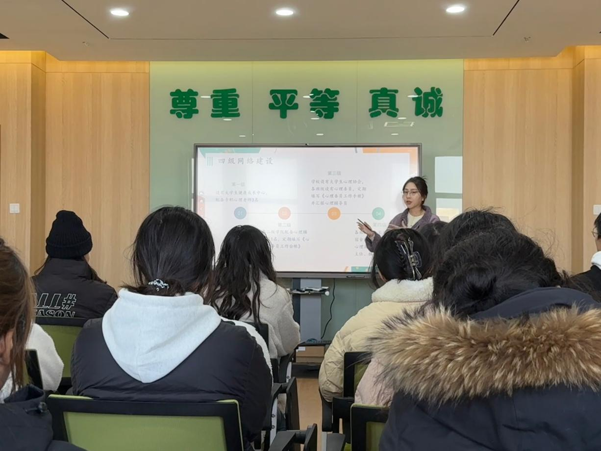为充分发挥公司心理委员、宿舍长在心理健康教育工作中的重要作用,进一步提升公司心理健康教育的专业性和实效性,更好地开展心理互助、自助等工作,伟德bevictor于11月27日在B613教室开展了专题培训。本次培训由郑莹老师主讲,2023级、2024级心理委员以及心理健康部成员参与。