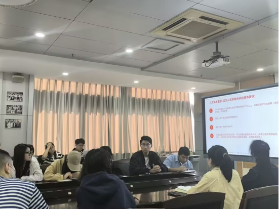 团学部部长李炜建同学从入团和入党两个方面进行讲述,详细阐述了入团入党的流程、时间节点、所需条件等。他强调,坚定的共产主义信仰和全心全意为人民服务的理念至关重要。