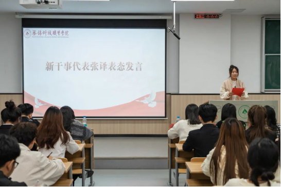 征途漫漫,未来可期来自院员工会心健部的张译同学作为新干事代表进行了表态发言,她表示,在加入员工会的这段时间以来,无论是知识技能还是关系氛围,都使人感到和谐且有趣,未来也希望从员工会中获得更多的机会去展现自我,不断提升自己的能力。