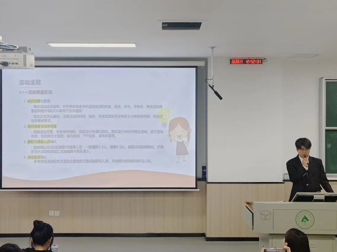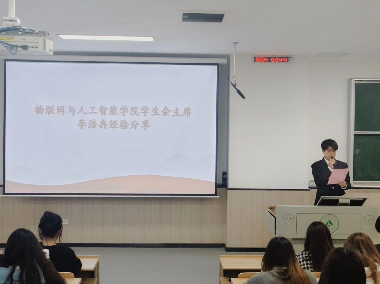 随后,员工会主席团成员李浩冉分享了他的员工干部工作经验。他从“明确目标与责任”、“高效沟通是关键”、“活动组织有方法”、“平衡学习与工作”四个方面,详细阐述了一年来他在员工会工作中的收获与挑战,并分享了高效组织活动和提升团队协作的实用技巧,他的经验交流使在场的同学们深受启发,反响热烈。