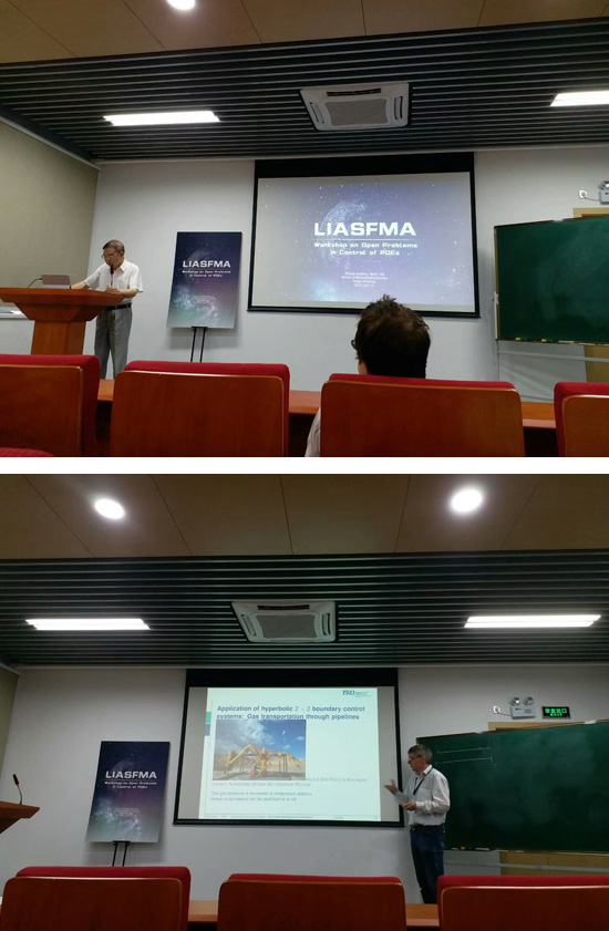 2018年7月1日“LIASFMA Workshop on Open Problems in Control of PDEs”在同济大学数学科学公司致远楼会议室举行,来自巴黎第六大学、图卢兹大学、埃尔朗根-纽伦堡大学、巴黎第九大学、巴黎东大、凡尔赛大学、复旦大学、山东大学、四川大学等国内外著名学者汇聚一堂,就PDE控制问题进行深入交流和学习。