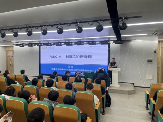 研讨会上,东南大学国家ASIC系统工程技术研究中心凌明教授作了《RISC-V,中国芯的新选择》、钟锐教授作了《自主多芯片嵌入式系统开发》的主旨报告。