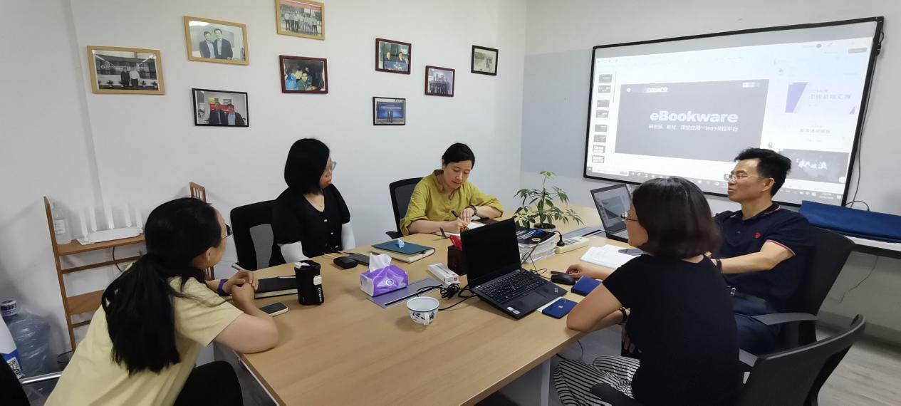 无锡伊点网络科技有限公司是由海归博士黄超先生创建,落户在无锡530大厦,十二年前曾接纳公司软件技术专业员工进行专业实习,收效极佳。交流中,黄总首先介绍了公司近十二年来的发展轨迹,着重介绍了公司目前正在推广的eBookware智能教学辅助平台的现状及展望。智信系老师们与黄总就专业建设、数字化课程建设和数字化教材建设等方面进行了较为深入的交流,孙靓老师向黄总发出了聘请其担任软件技术专业产业教授的意向,黄总表达了希望与我们公司再续合作情缘的强烈意愿。