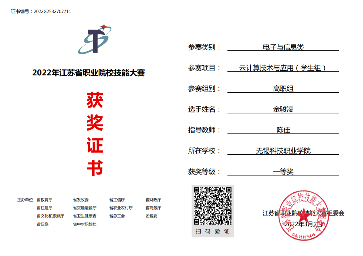 云计算技术应用专业员工在国家和省市级各级各类的技能大赛中多次取得优异的成绩。